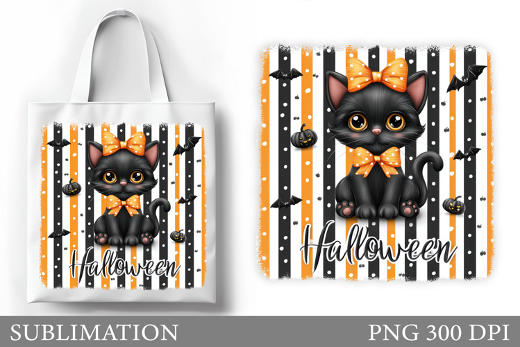 Cute Cat Sublimation. Halloween Cat Tote Bag Sublimation example image 1