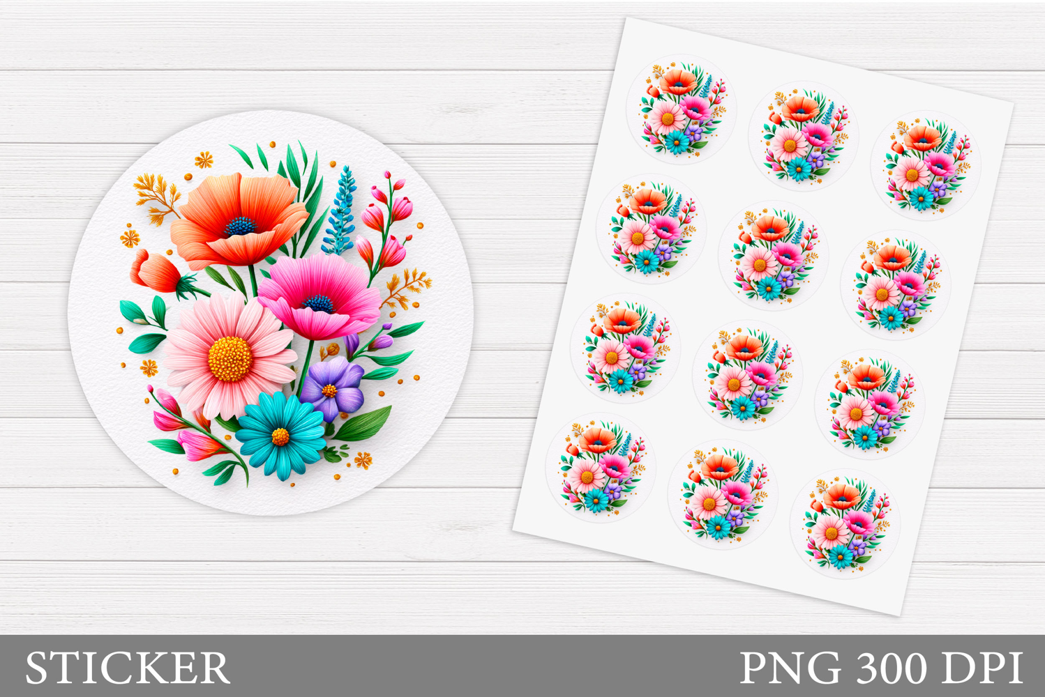 Wildflowers Sticker Design. Floral Sticker Printable example image 1