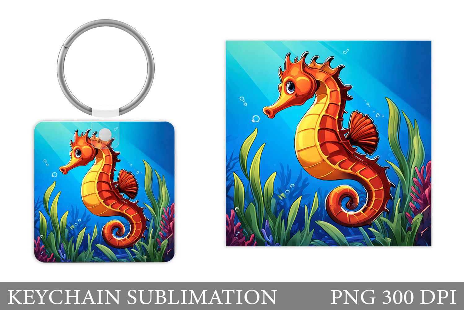 Seahorse Keychain Sublimation. Sea Keychain Design