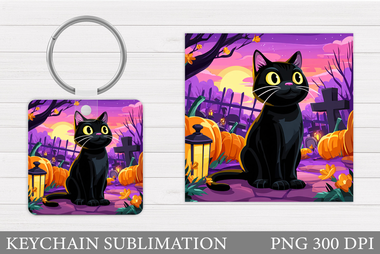 Cute Cat Keychain Sublimation. Halloween Cat Keychain Design