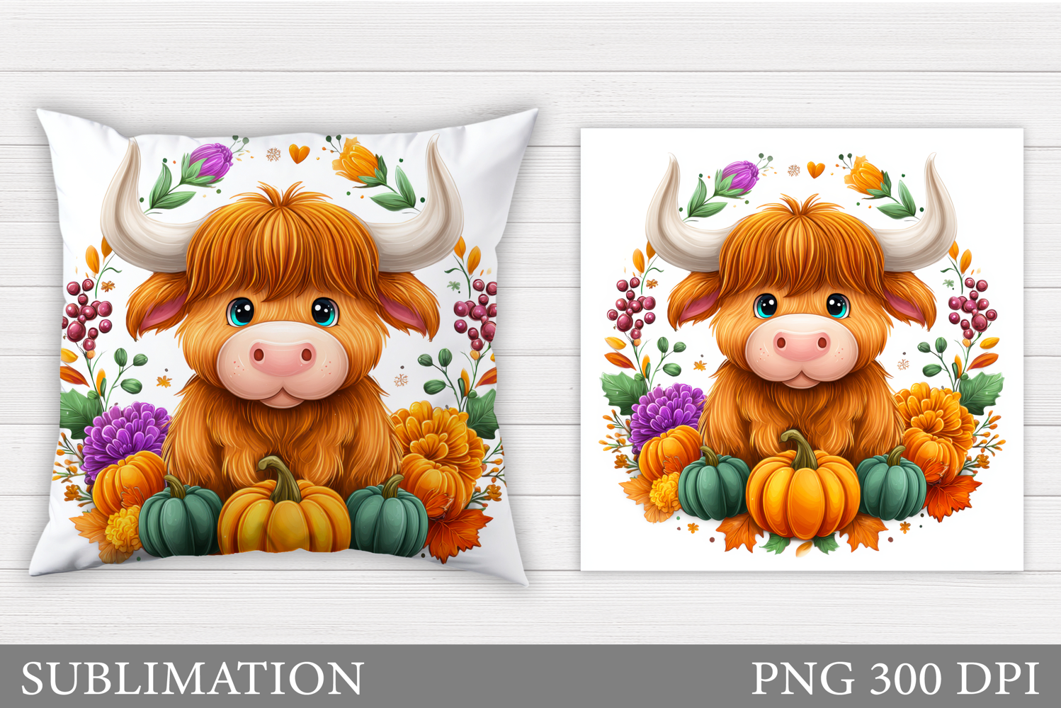 Fall Cow Pillow Sublimation. Fall Pillow Design example image 1