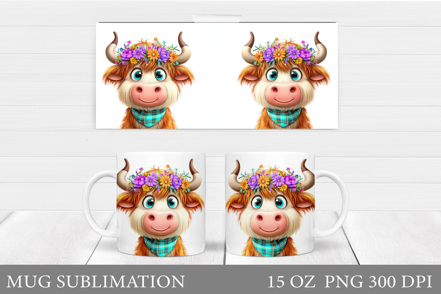 Valentines Mug Highland Cow Sublimation Mug Wrap Sublimation Cow Mug Highland Cow Mug Cow Mug Sublimation Cute Cow Mug Cow Mug Wrap Design Summer Cow Mug Cow Flowers Mug