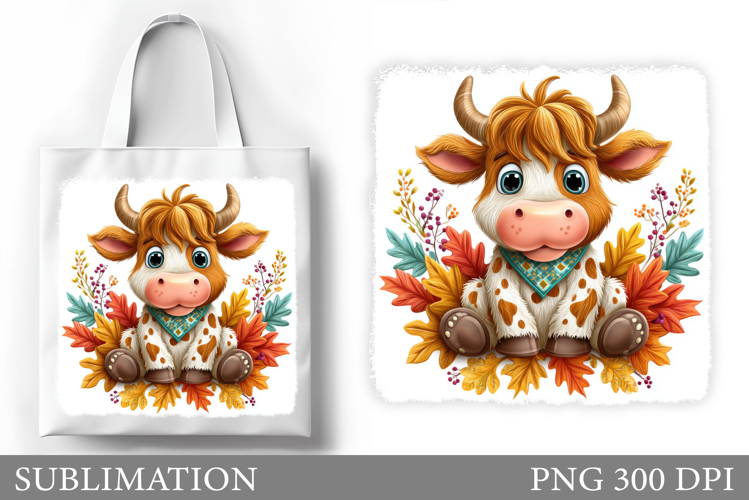 Fall Cow Tote Bag Sublimation. Fall Tote Bag Design example image 1