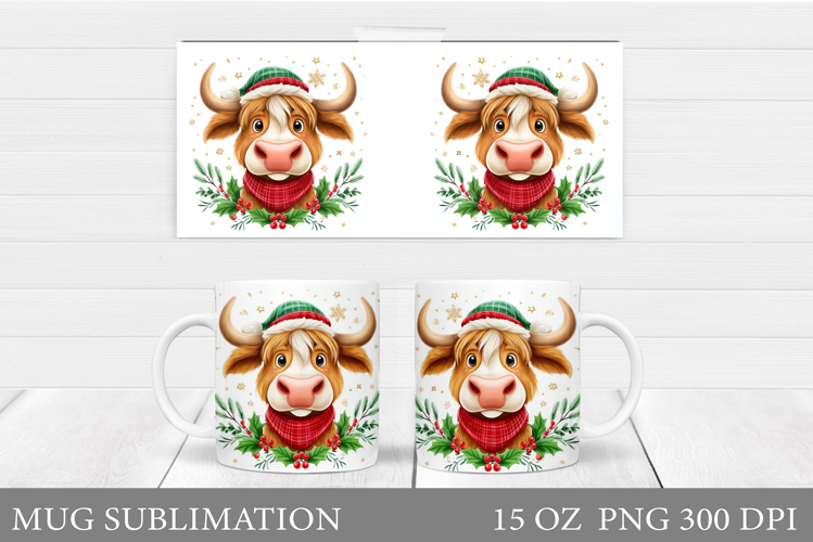 Christmas Cow Mug Design. Highland Mug Sublimation