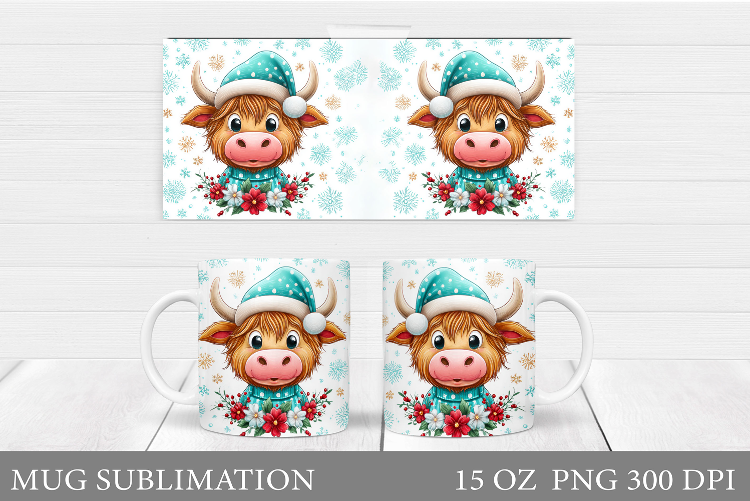 Christmas Cow Mug Design. Christmas Mug Sublimation