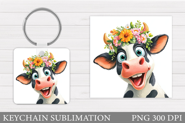 Cute Cow Keychain Design. Cow Flowers Sublimation