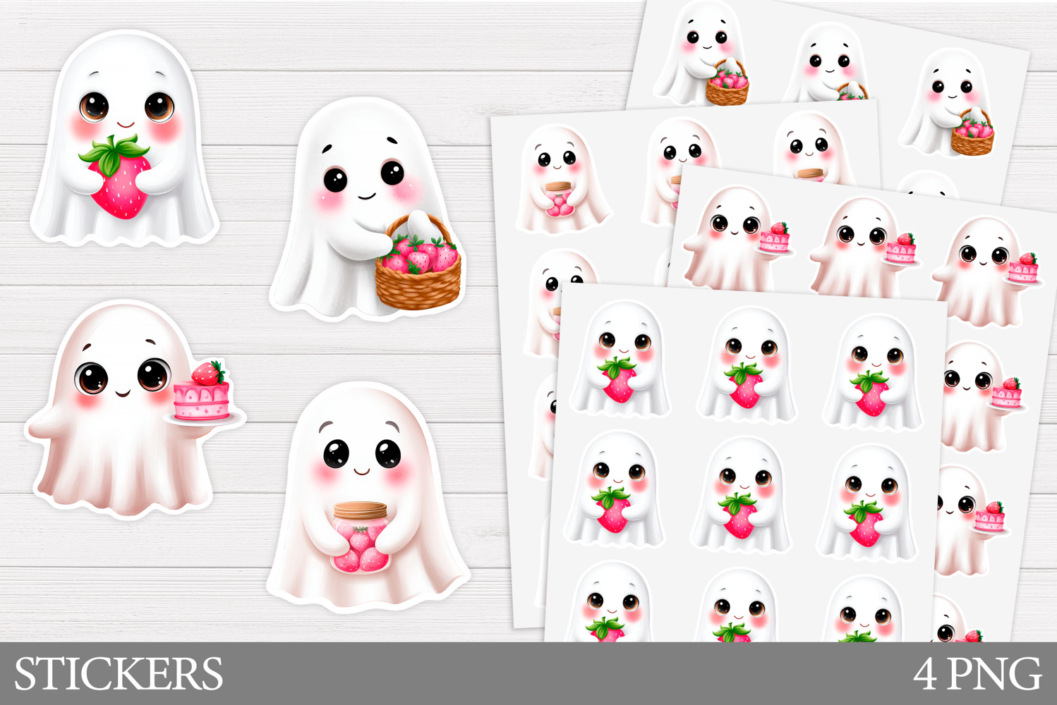 Cute Ghost Sticker Design. Strawberry Sticker Printable example image 1