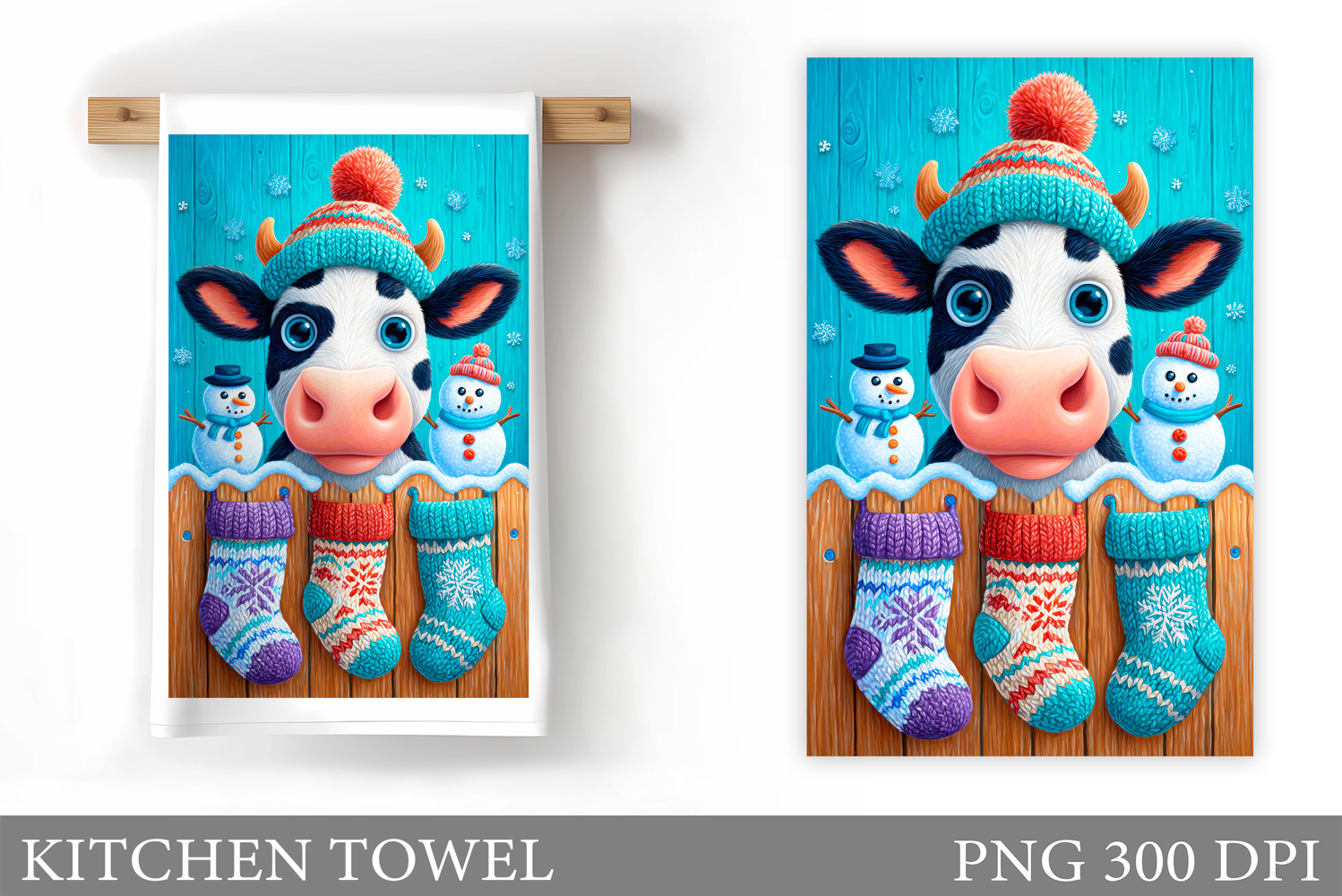 Christmas Cow Kitchen Towel. Christmas Kitchen Towel Design example image 1