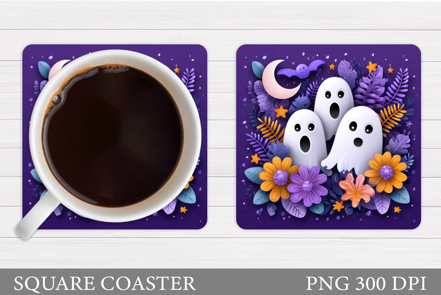 Cute Ghost Coaster Design. Cute Halloween Sublimation