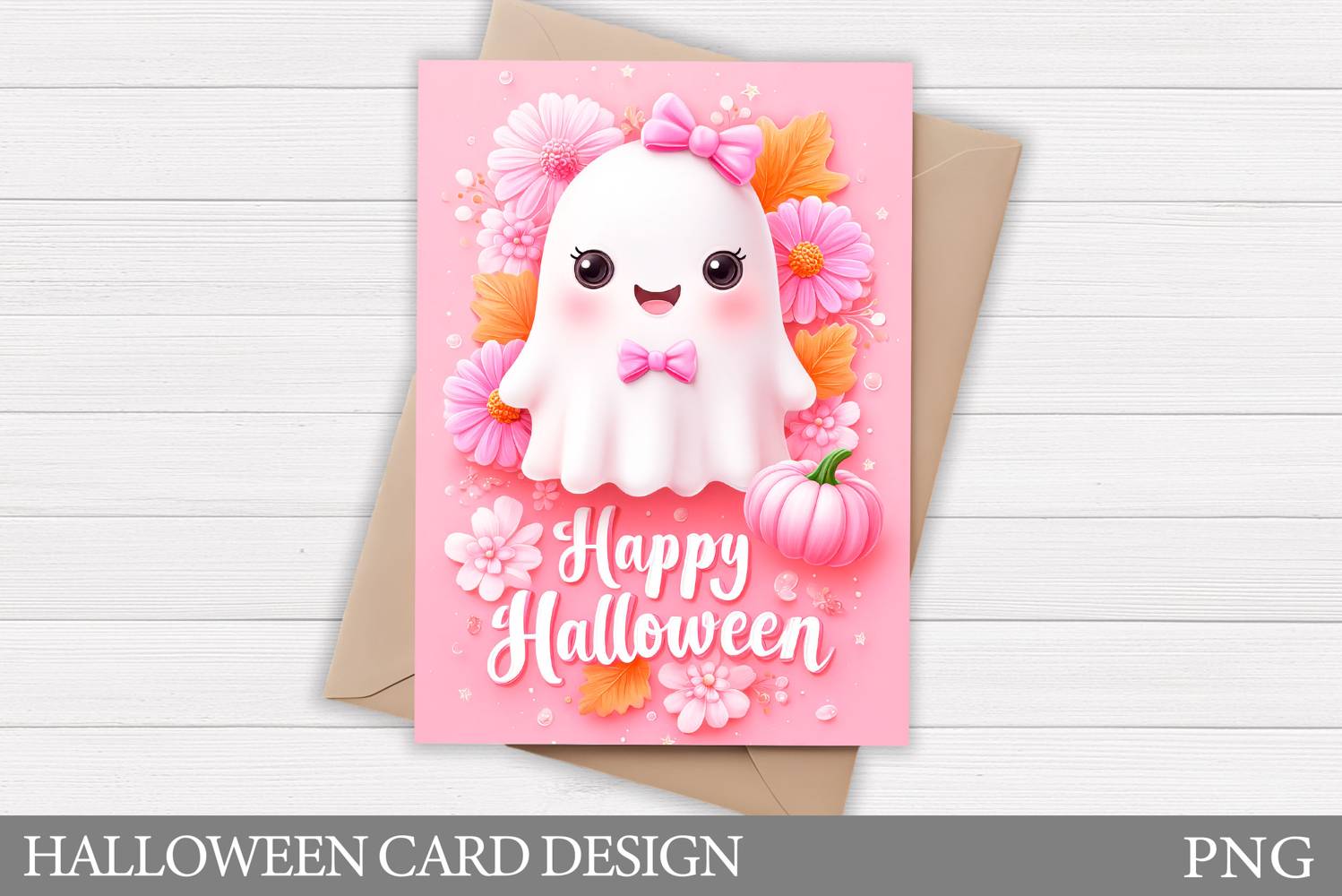 Cute Halloween Card Design. Halloween Ghost Card Printable