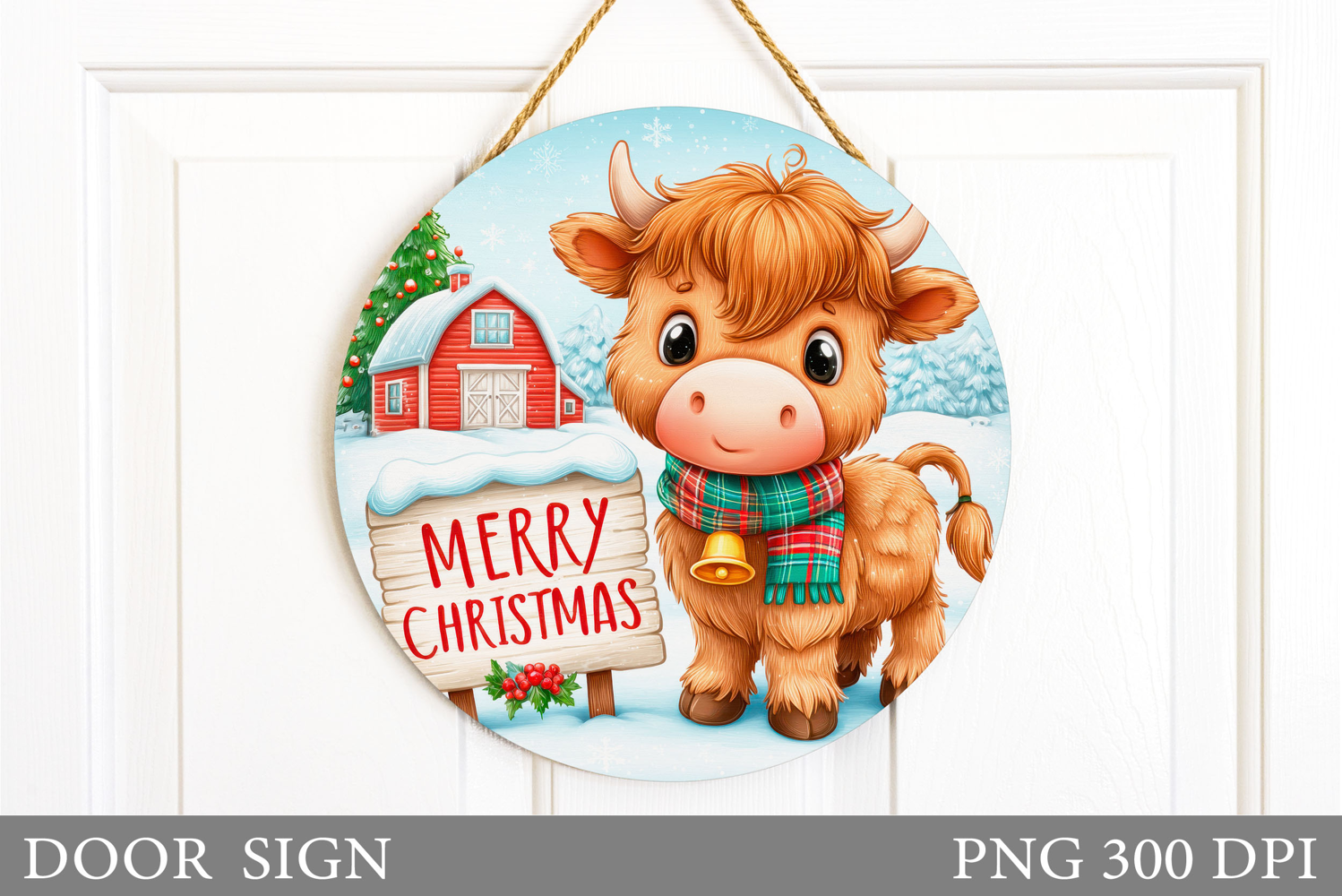 Christmas Cow Door Sign. Christmas Door Sign Sublimation example image 1