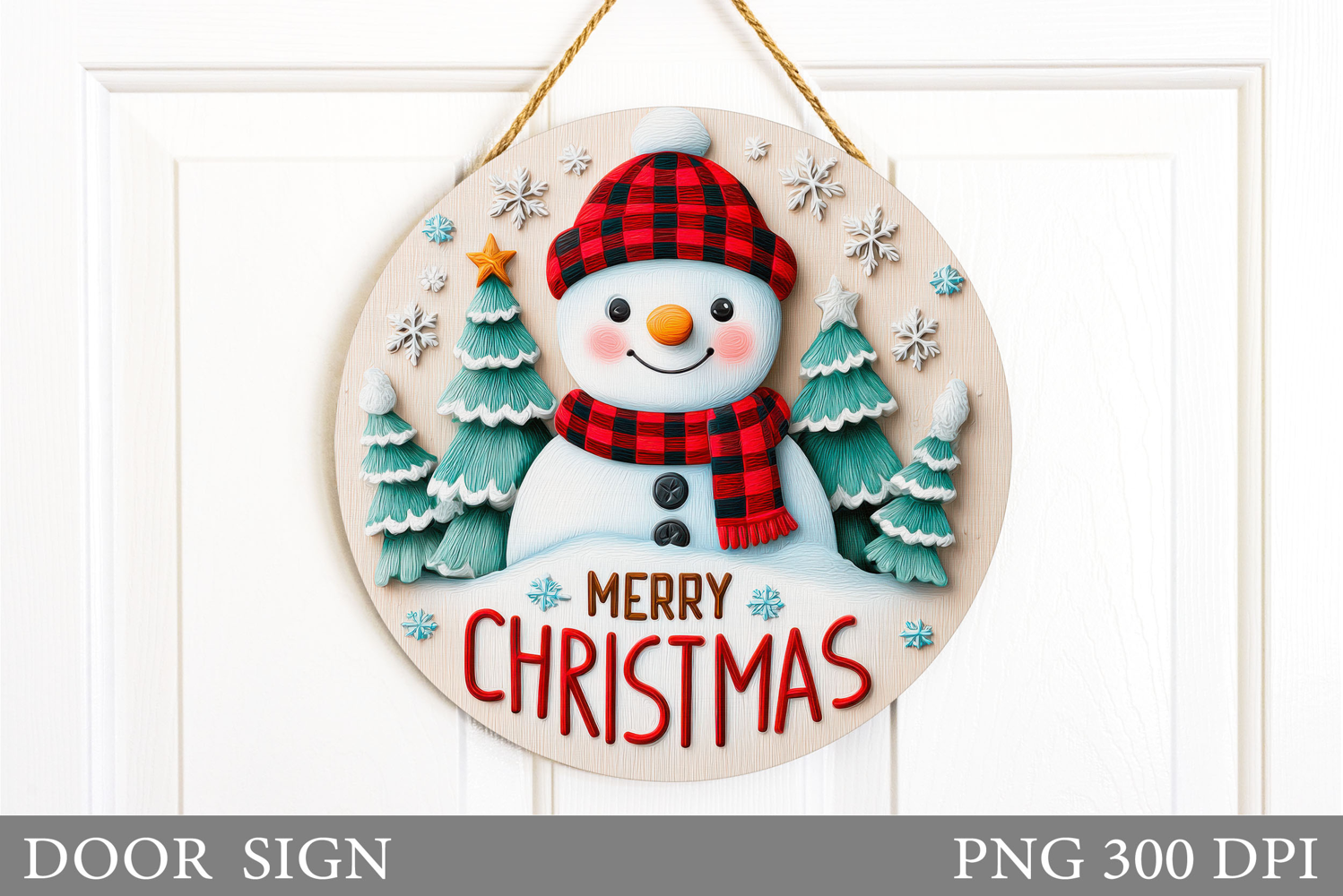 Cute Snowman Door Sign Design. Christmas Sublimation