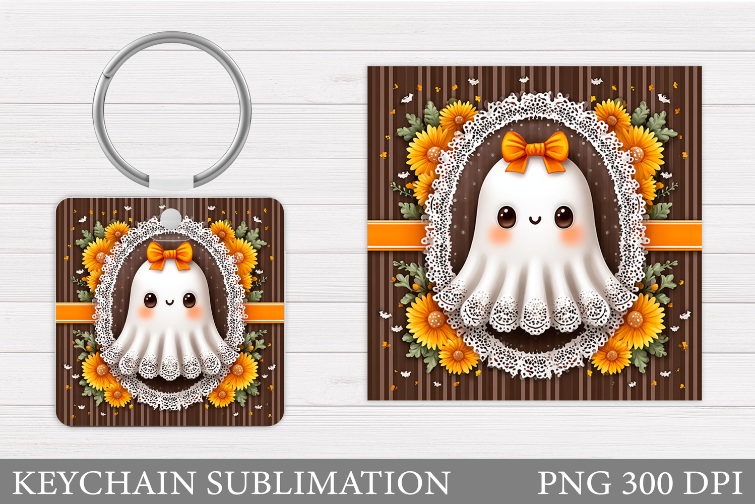 Cute Ghost Keychain Design. Cute Halloween Keychain example image 1