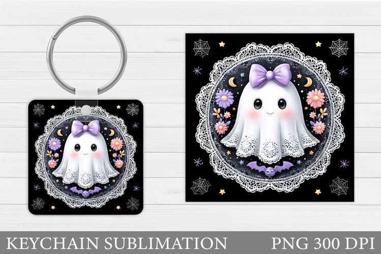 Cute Ghost Keychain Design. Cute Halloween Keychain example image 1