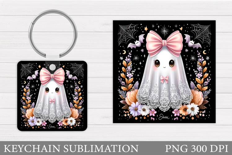 Cute Ghost Keychain Design. Cute Halloween Keychain example image 1