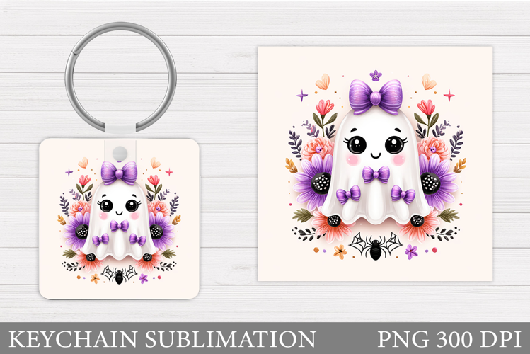 Cute Ghost Keychain Design. Cute Halloween Keychain example image 1