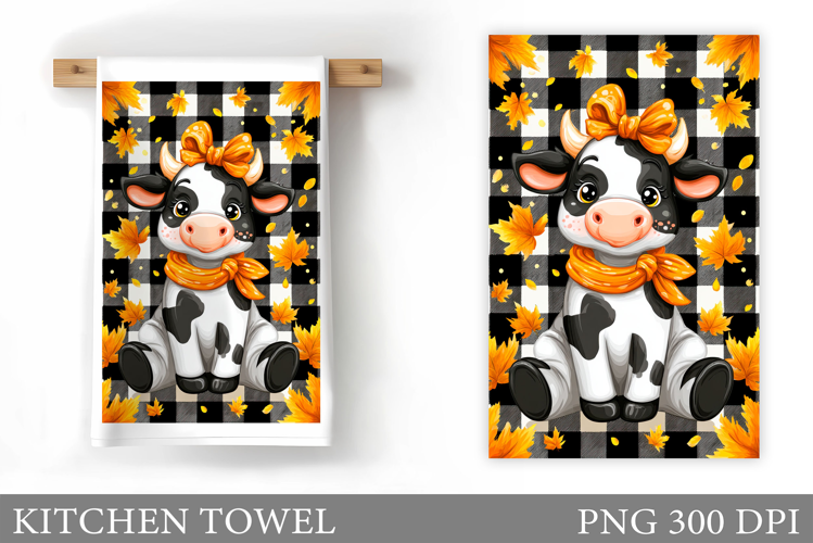 Fall Cow Kitchen Towel. Fall Kitchen Towel Sublimation example image 1