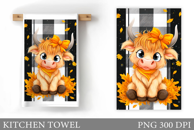 Fall Cow Kitchen Towel. Fall Kitchen Towel Sublimation example image 1