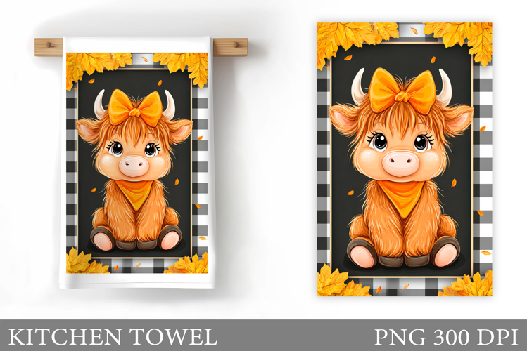 Highland Cow Kitchen Towel. Fall Cow Kitchen Towel Design example image 1