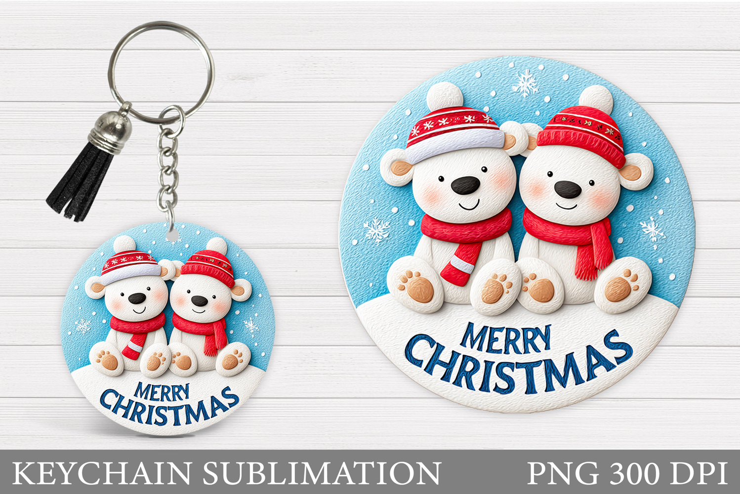 Polar Bear Keychain Design. Christmas Keychain Sublimation