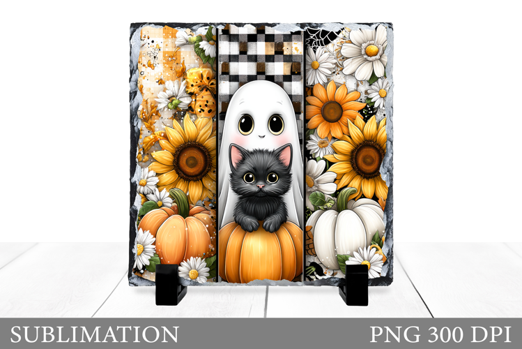 Fall Sublimation Cute Halloween Sublimation Cute Ghost Sublimation Square Sublimation Slate Sublimation Fall Slate Cute Ghost Slate Halloween Slate Ghost Slate Design Ghost Flowers Slate