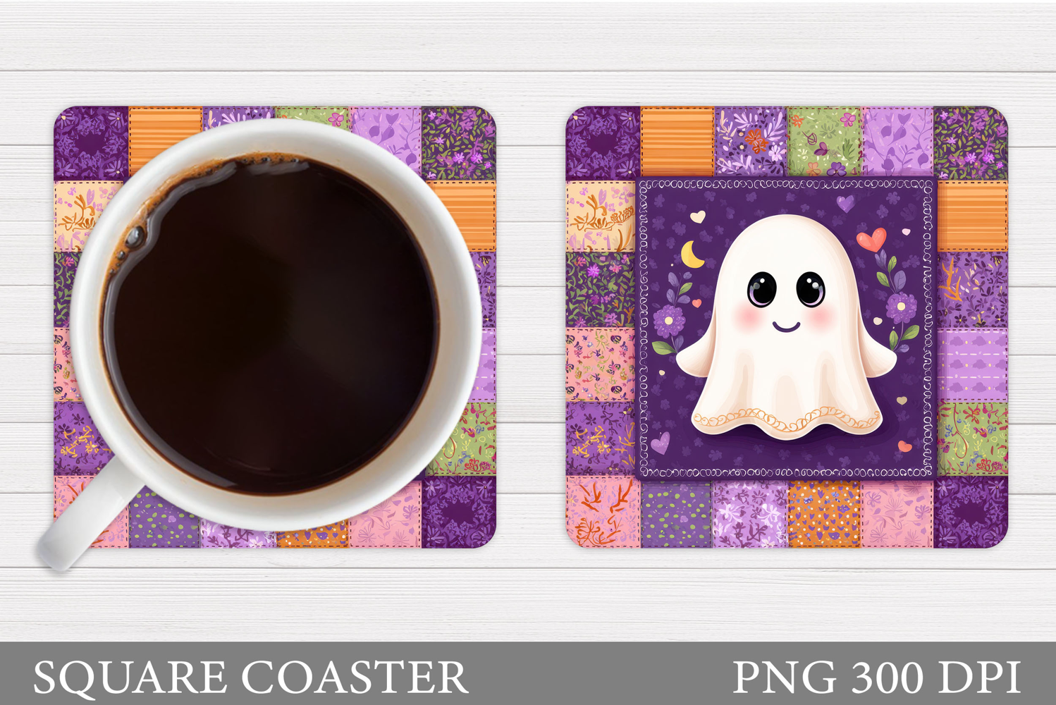 Cute Ghost Coaster Design. Cute Halloween Sublimation