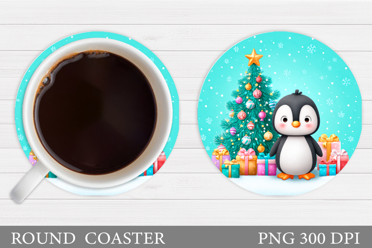 Christmas Penguin Coaster. Christmas Coaster Sublimation example image 1