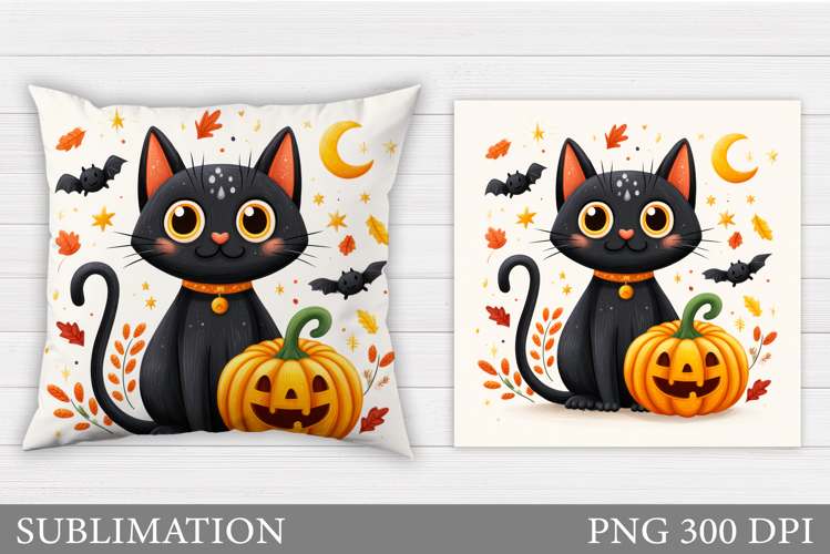 Halloween Cat Pillow Design. Cute Halloween Sublimation