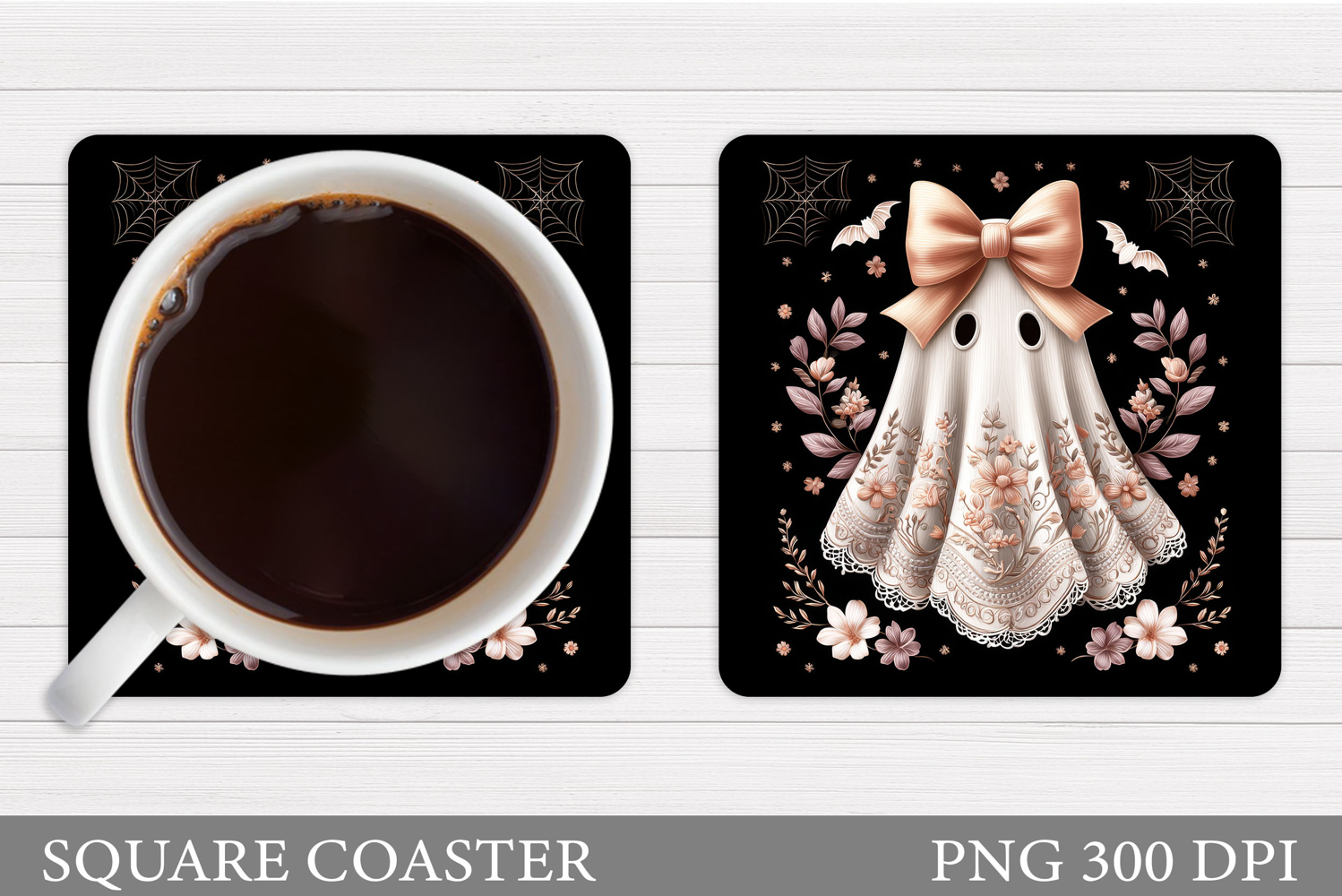 Cute Ghost Coaster Sublimation. Halloween Coaster Design