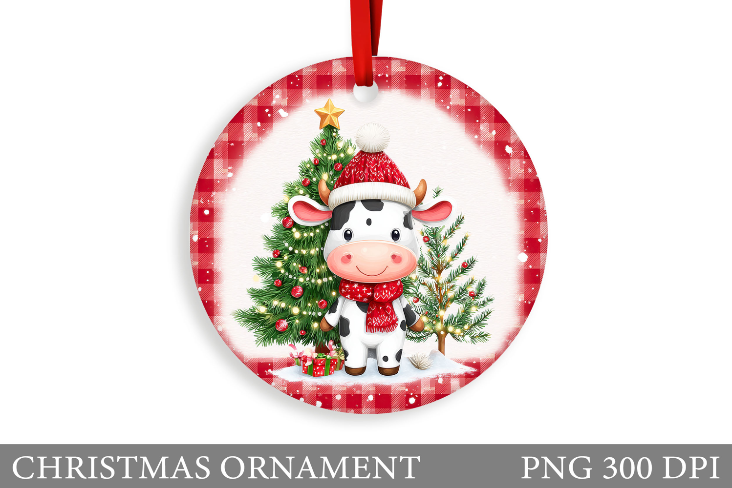 Cute Cow Christmas Ornament. Christmas Ornament Sublimation