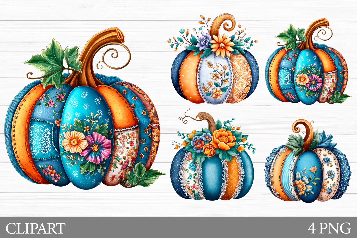 Similar Design Products to Patchwork Pumpkin Clipart. Floral Pumpkin Clipart