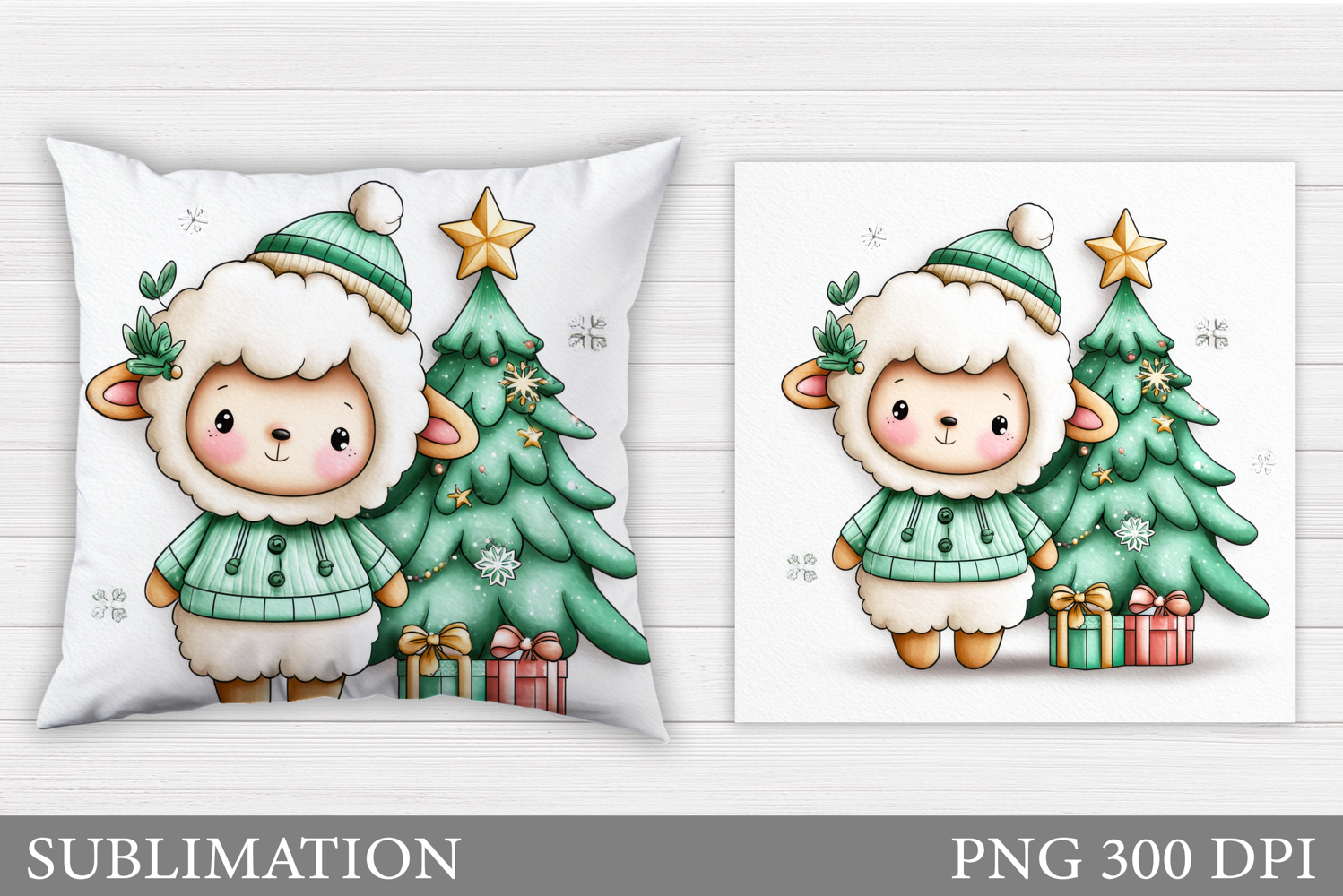 Cute Lamb Pillow Design. Christmas Pillow Sublimation example image 1