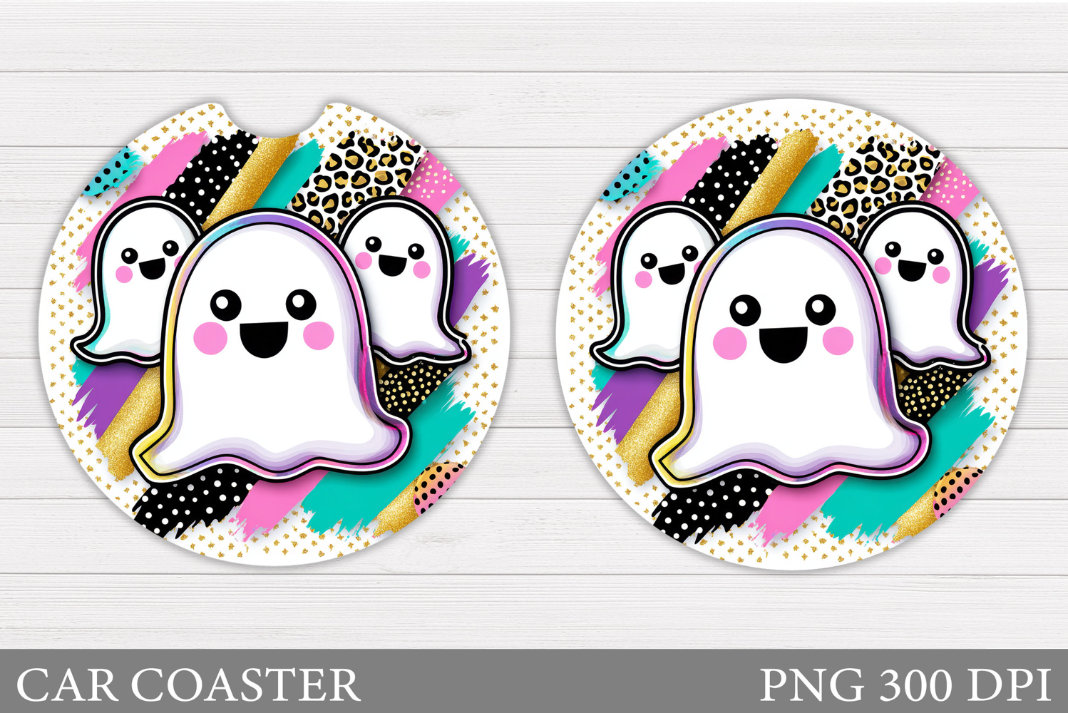 Cute Ghost Car Coaster. Cute Halloween Car Coaster Design
