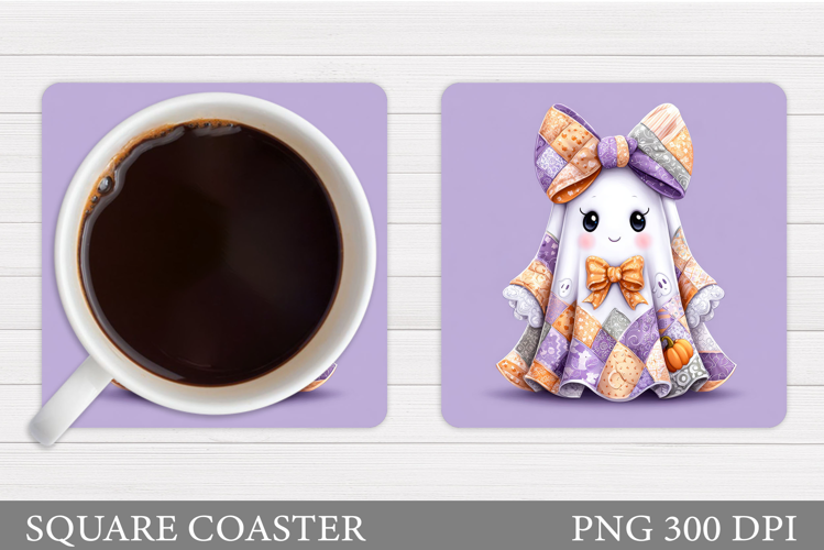 Patchwork Chost Coaster. Halloween Coaster Sublimation example image 1