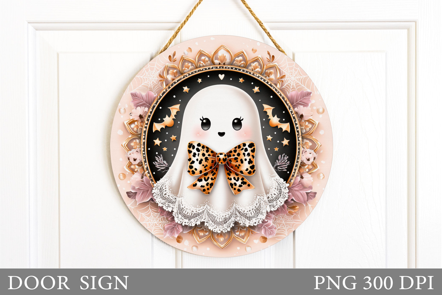 Cute Ghost Door Sign Sublimation. Halloween Door Sign Design