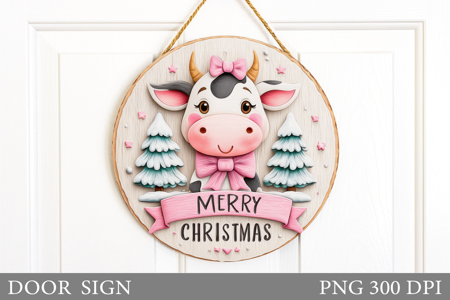 Christmas Cow Door Sign. Christmas Door Sign Sublimation example image 1