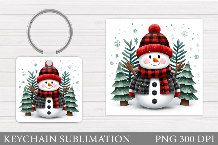 Cute Snowman Keychain Sublimation. Christmas Keychain Design