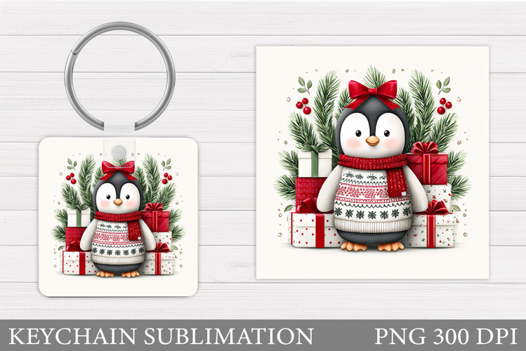 Cute Penguin Keychain Design. Christmas Keychain Sublimation example image 1