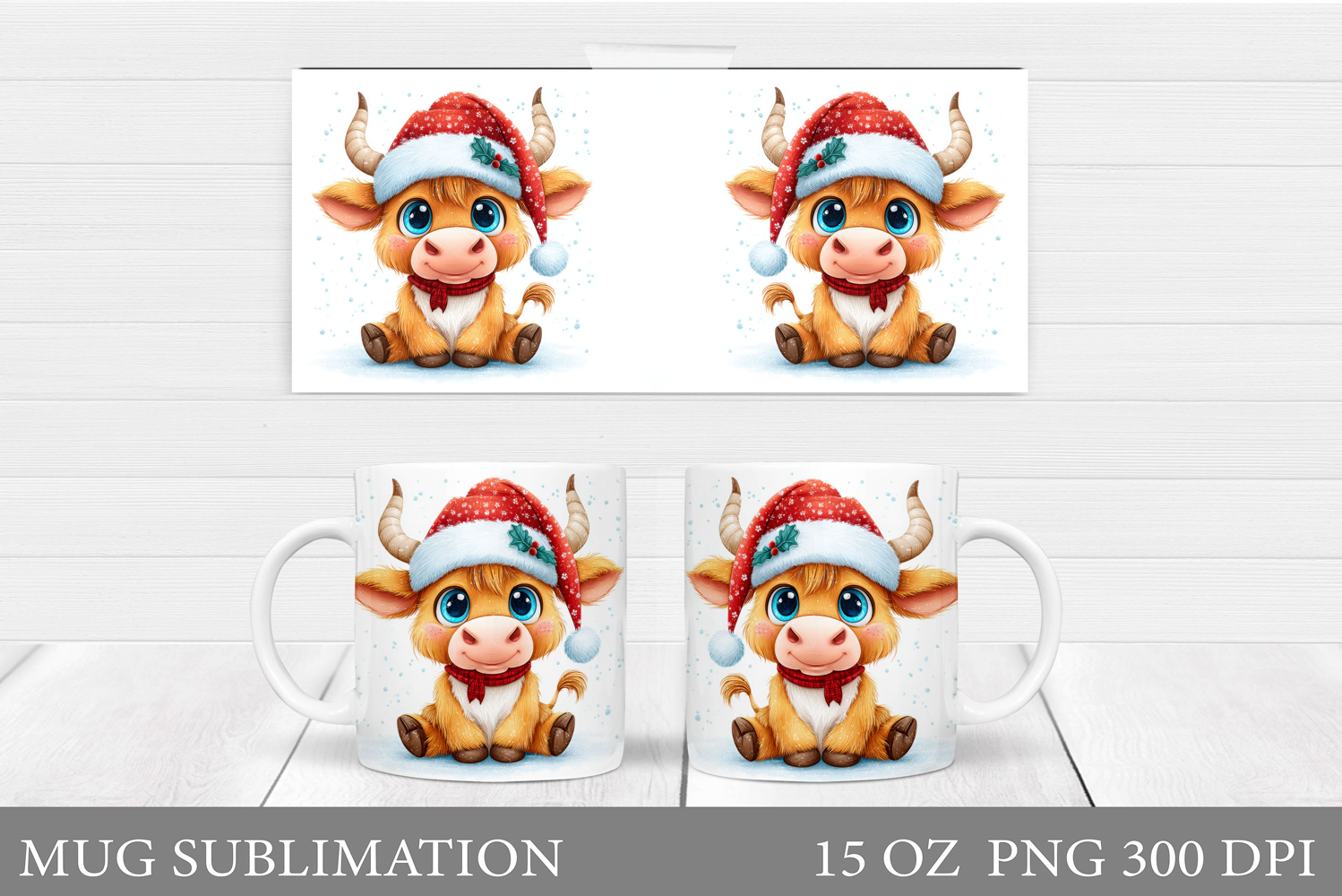 Christmas Cow Mug Design. Christmas Mug Sublimation