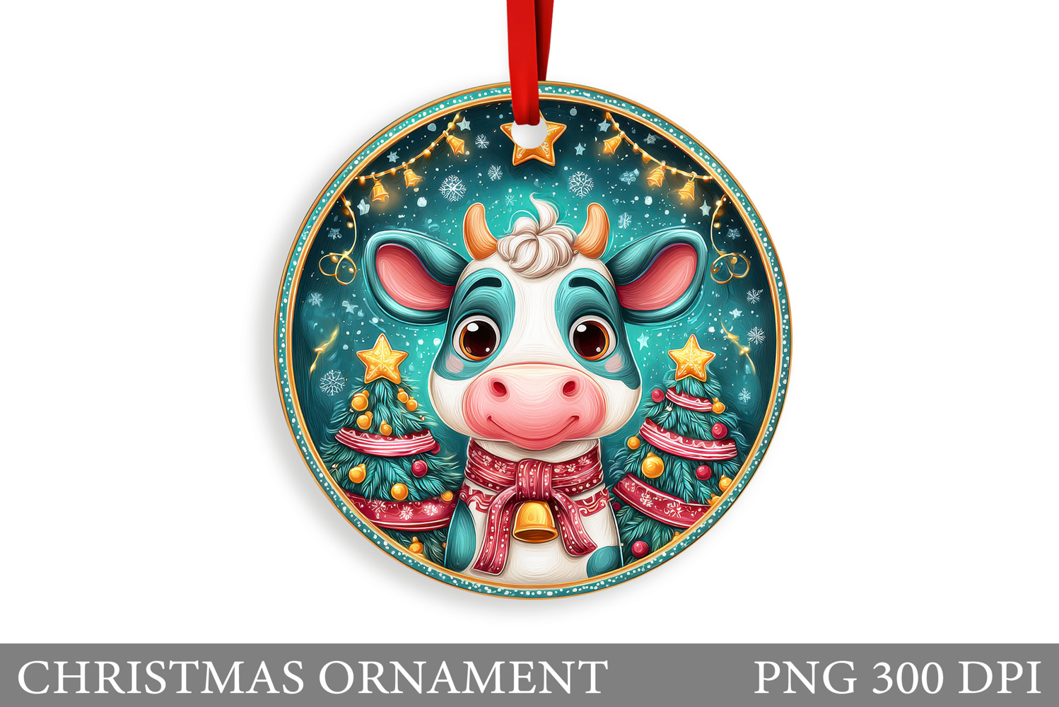 Cute Cow Christmas Ornament. Christmas Ornament Sublimation