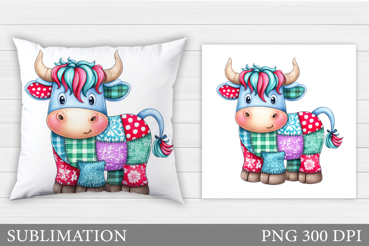 Patchwork Cow Pillow Design. Christmas Pillow Sublimation example image 1