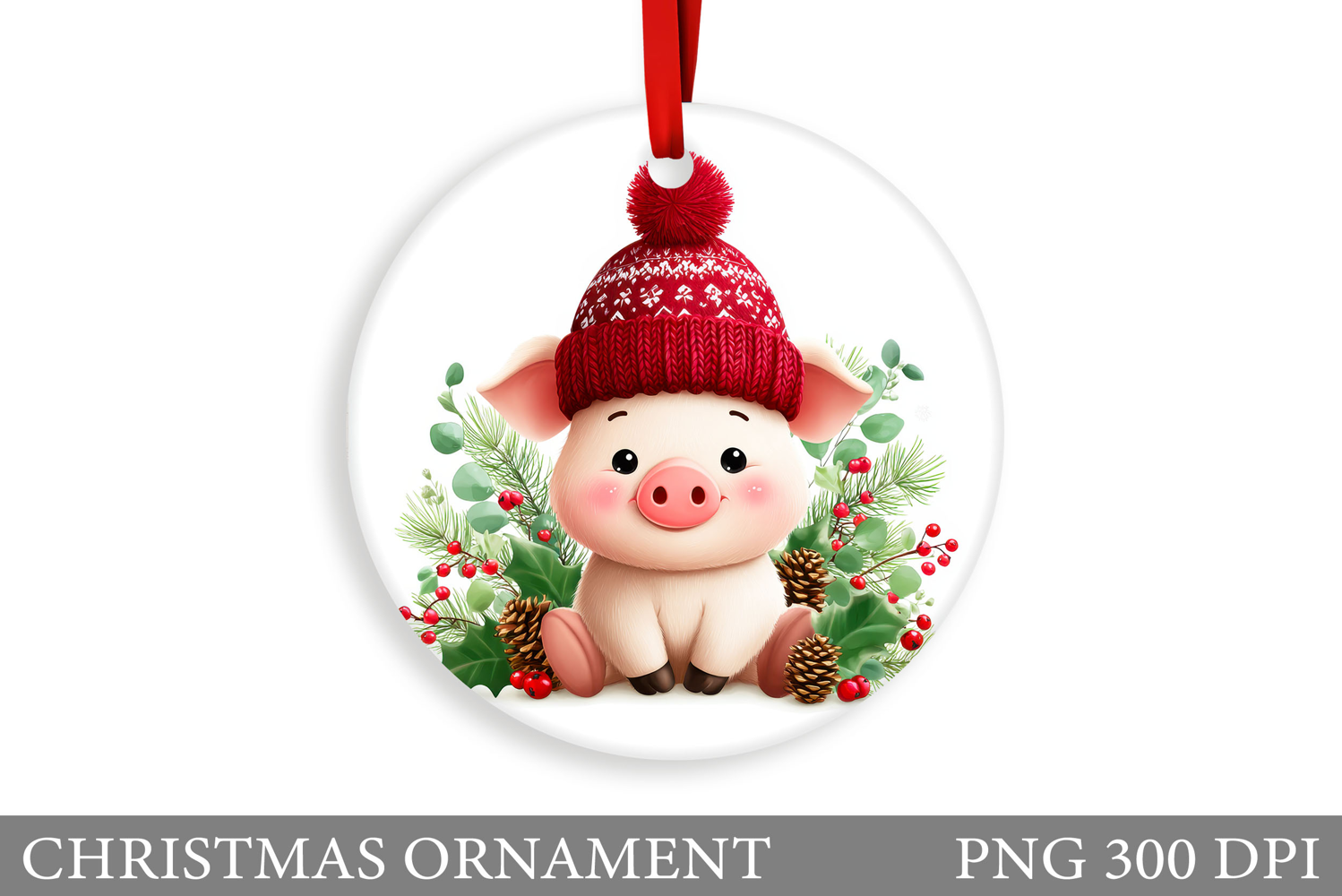 Cute Pig Christmas Ornament. Christmas Ornament Sublimation