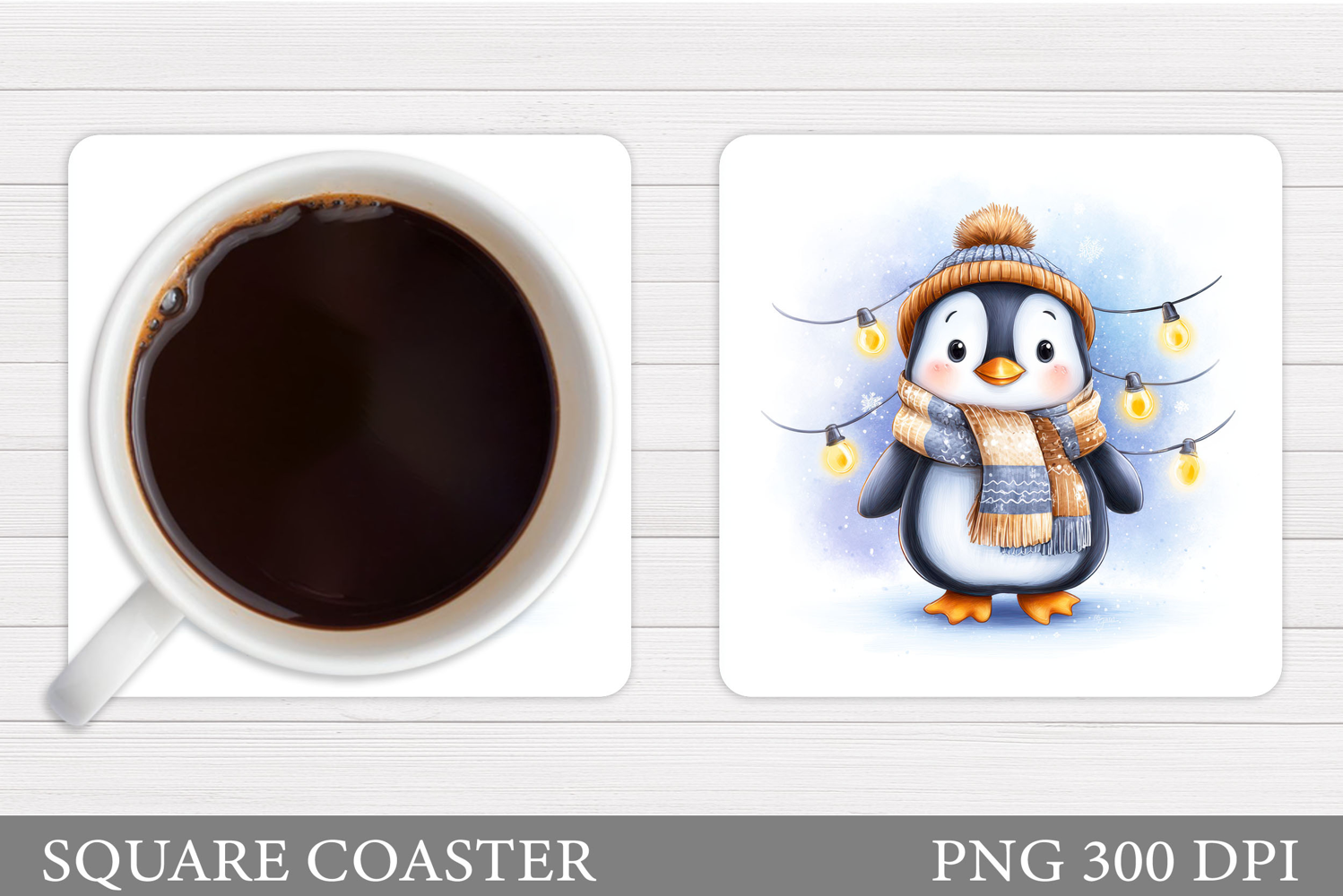 Christmas Penguin Coaster. Cute Penguin Sublimation