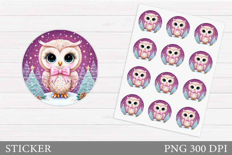 Christmas Owl Sticker Design. Christmas Sticker Printable example image 1