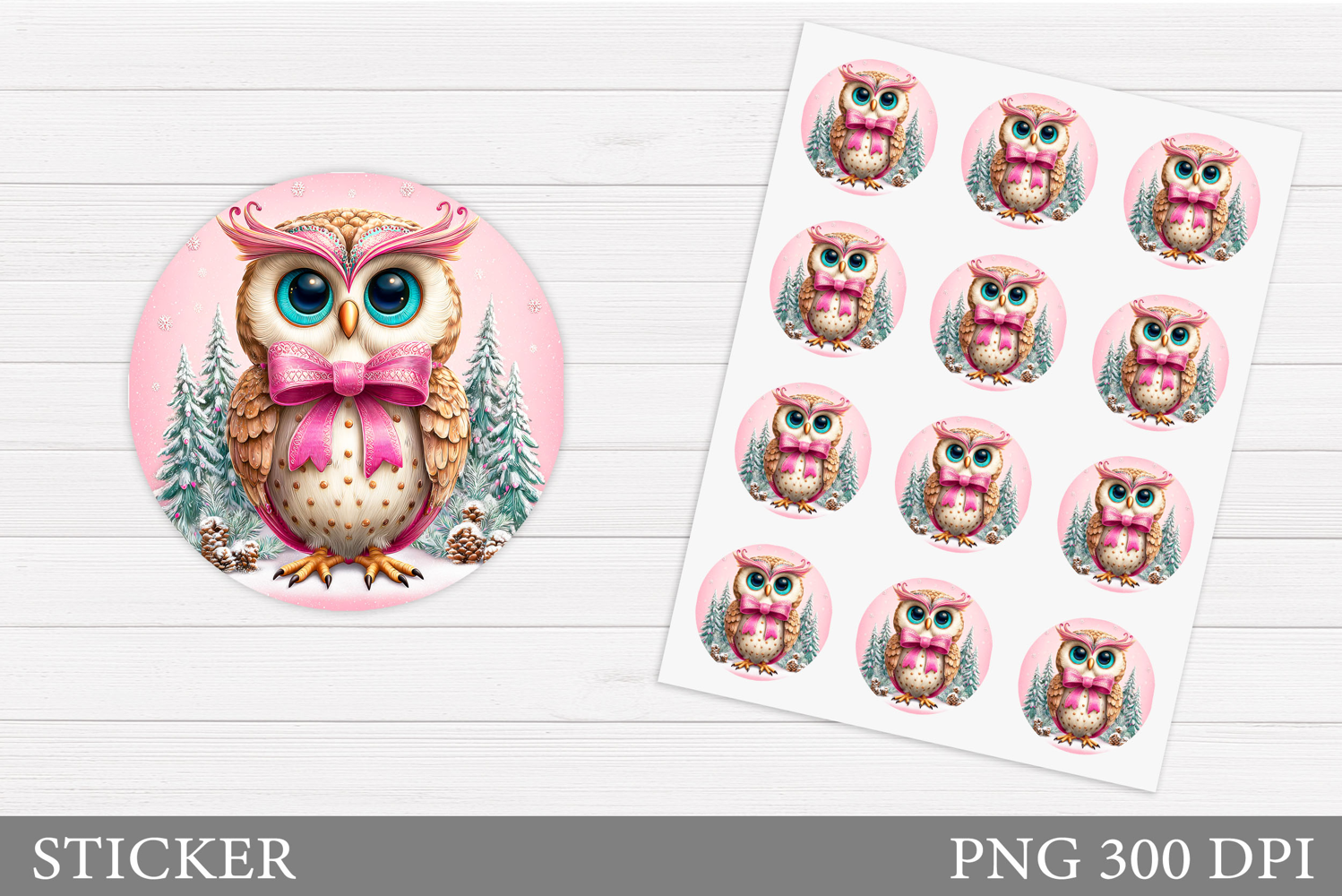 Christmas Owl Sticker Design. Christmas Sticker Printable example image 1