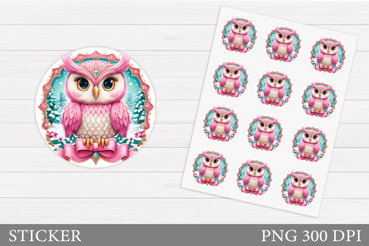 Cute Owl Sticker Design. Christmas Sticker Template example image 1