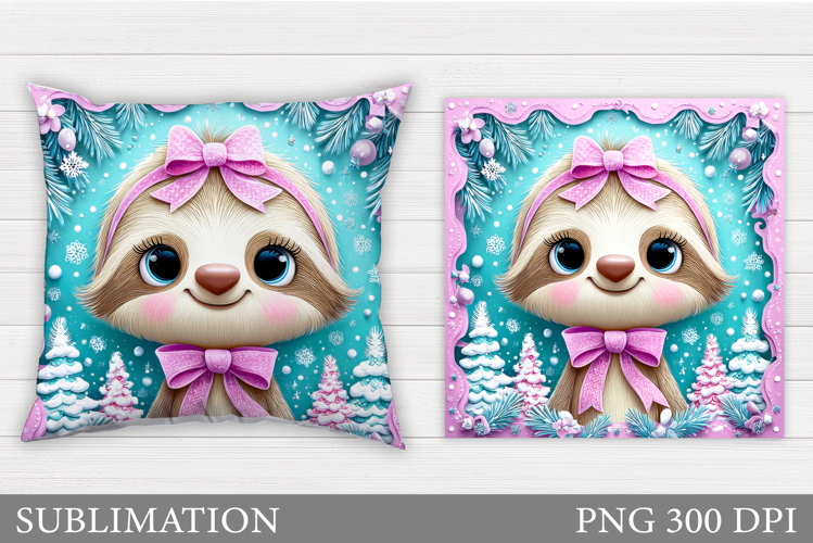 Christmas Sloth Pillow Design. Christmas Pillow Sublimation