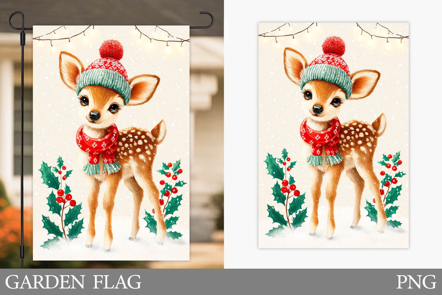 Christmas Deer Garden Flag. Christmas Garden Flag Design