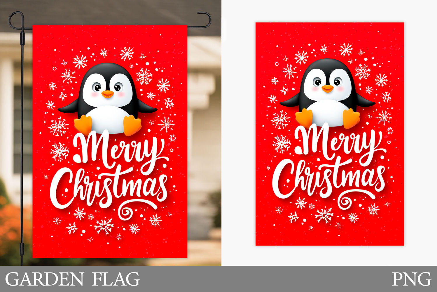 Christmas Penguin Garden Flag. Christmas Garden Flag Design example image 1