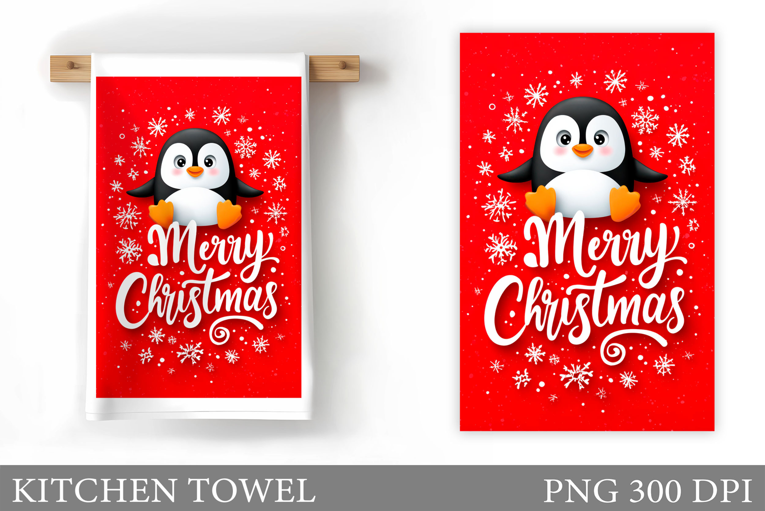 Cute Penguin Kitchen Towel. Christmas Kitchen Towel Design example image 1